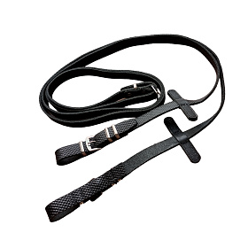 - Повод – самый длинный ремень, с помощью которого всадник может управлять лошадью. Это обязательный элемент уздечки. Повод крепится к трензелю и тянется к рукам наездника.